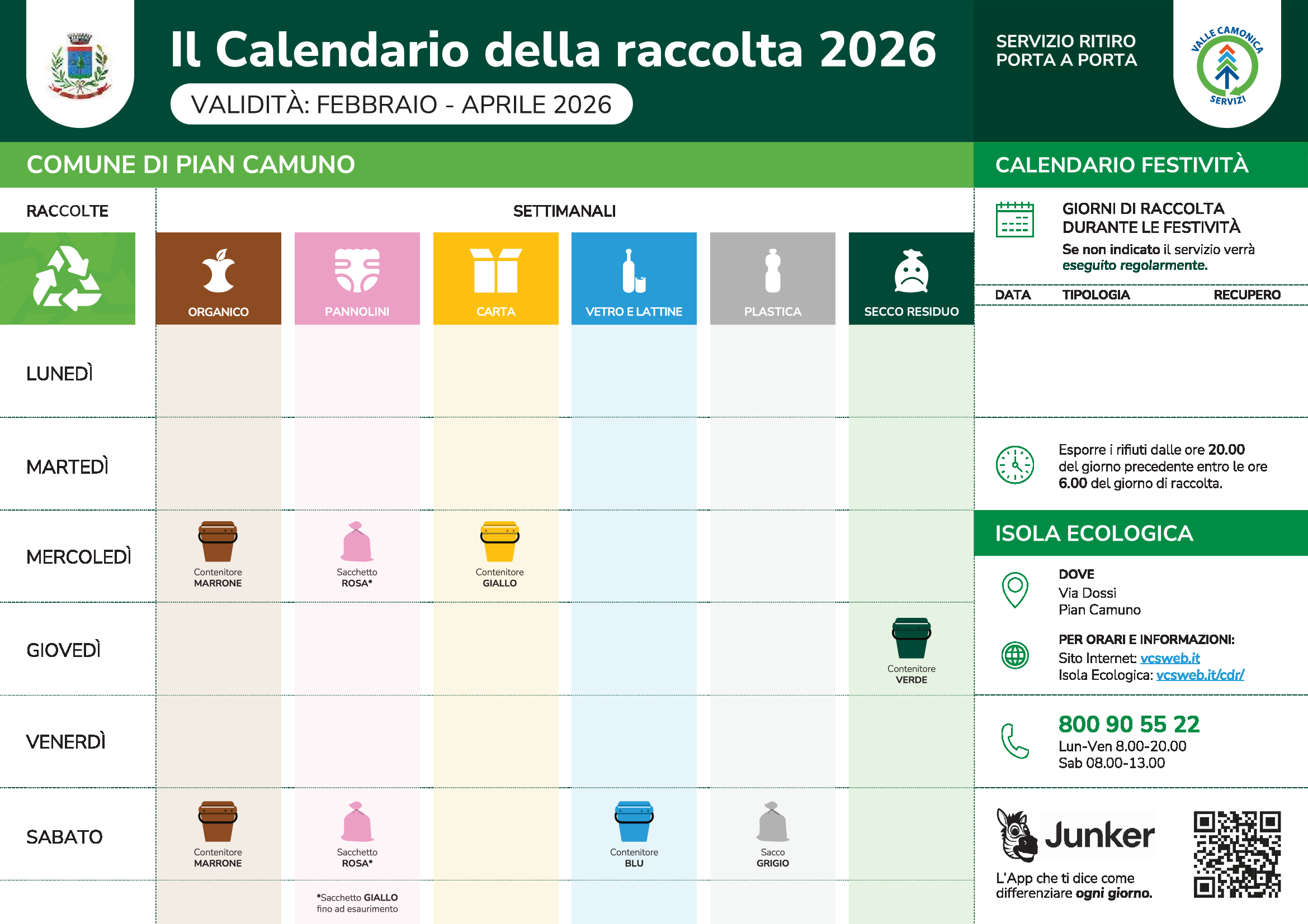 Si informa la cittadinanza che nel 2026 il calendario della raccolta differenziata porta a porta subirà delle modifiche
