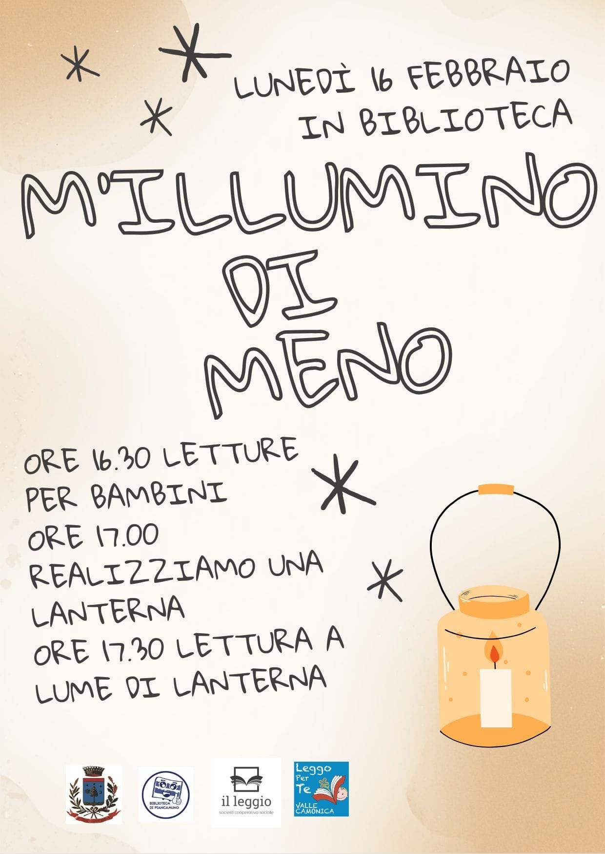Lunedì 16 febbraio in biblioteca: letture per bambini, laboratorio di lanterne e lettura finale a lume di candela per la giornata "M'illumino di Meno"