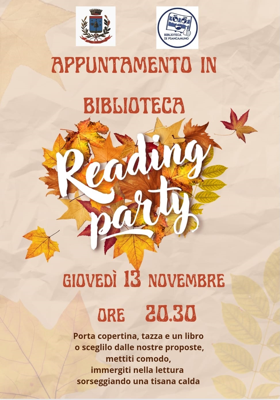 Giovedì 13 novembre 2025, alle ore 20.30, presso la biblioteca di Pian Camuno, si terrà il Reading party.